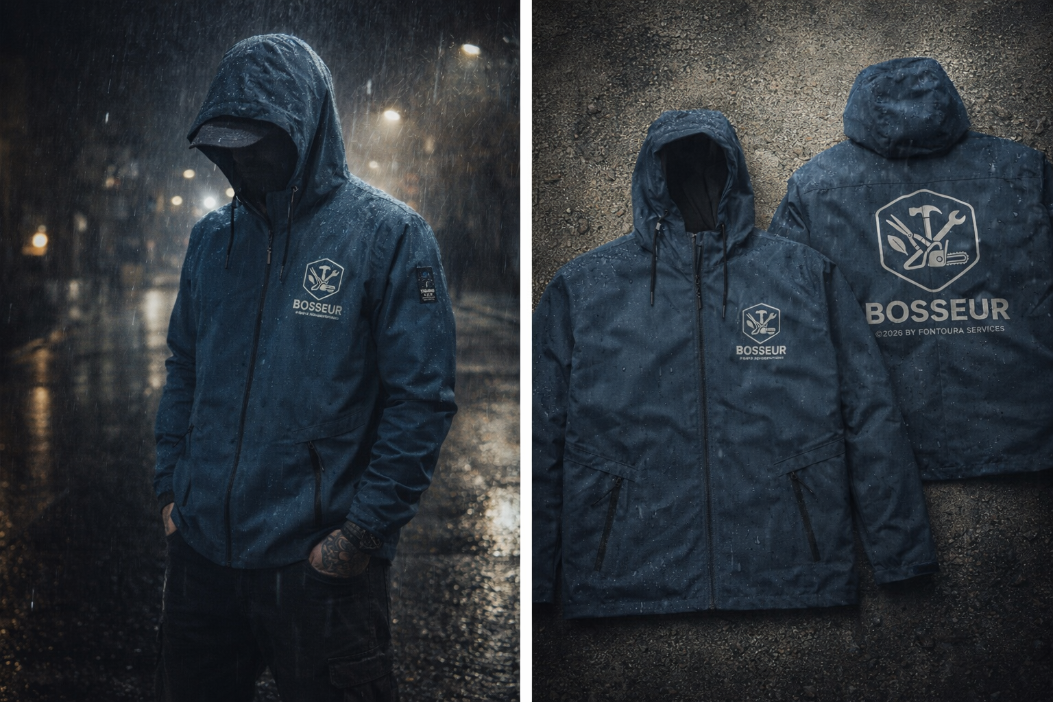 Veste BOSSEUR bleue conçue pour affronter les journées fraîches. Coupe pratique, résistante et logo BOSSEUR visible à l’avant et au dos. Parfaite pour les bosseurs actifs sur le terrain.
