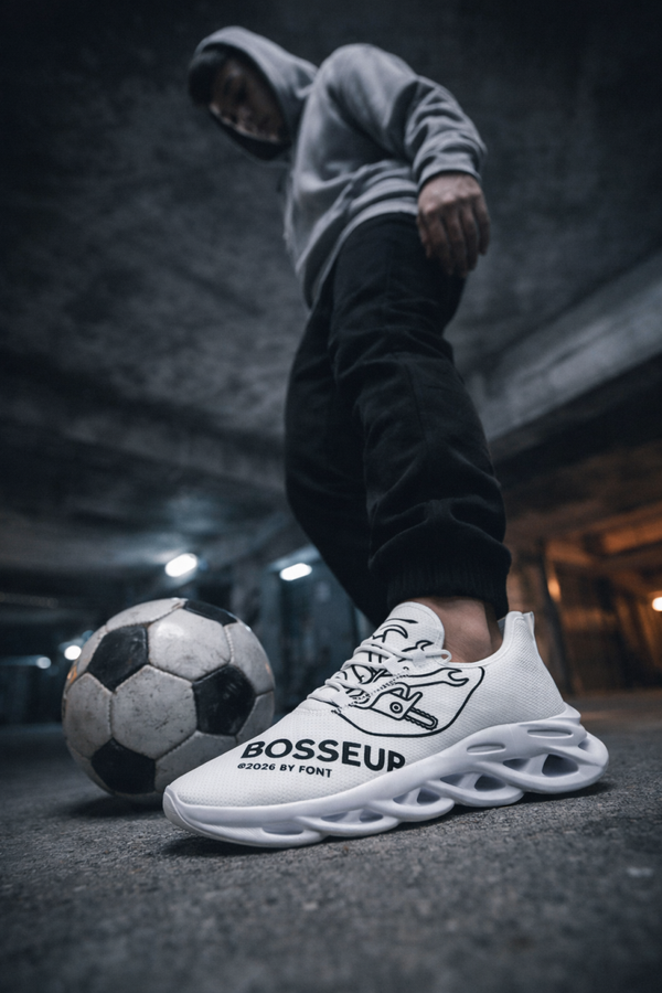 Chaussures de la marque BOSSEUR® Modèle exclusif personnalisé avec le logo BOSSEUR, design original pensé pour un style street / urbain / quotidien. ✔️ Tige en maille respirante ✔️ Semelle MD légère, amortissante et confortable ✔️ Chaussures légères et agréables à porter ✔️ Style sport, décontracté, street ✔️ Convient pour un usage quotidien, balade, ville, travail léger ✔️ Toutes saisons 👟 Coupe standard 📏 Tailles disponibles : 42.5 (d’autres tailles disponible sur commande) 🎨 Couleur : blanc avec marquage BOSSEUR noir 🧼 Entretien facile 📍 Fabrication : Chine 🎨 Design & personnalisation : marque BOSSEUR 💬 Série personnalisée – parfaite pour celles et ceux qui aiment les pièces originales et le style street.